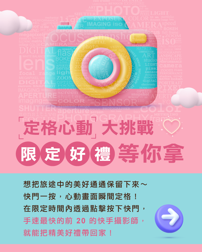 活動期間內完成「定格心動 大挑戰」遊戲,並於截止時間11月23日(日)前填寫資料登錄成績,即可參加遊戲排名活動。